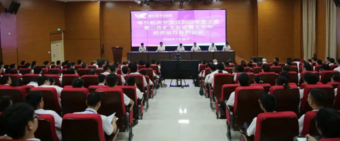 7月28日上午,喀什經濟開發區召開2023年黨工委第二次擴大會議暨上半年經濟運行分析會議。會議堅持以習近平新時代中國特色社會主義思想為指導,全面貫徹落實黨的二十大、二十屆二中全會精神,貫徹落實習近平總書記視察新疆重要講話重要指示精神,完整準確全面貫徹新時代黨的治疆方略,按照自治區黨委十屆八次全會和喀什地委擴大會議精神,回顧總結2023年上半年工作,系統謀劃、全面部署下半年各項工作,全力確保年初既定目標任務圓滿完成,奮力譜寫喀什經濟開發區高質量發展和高水平開放新篇章。