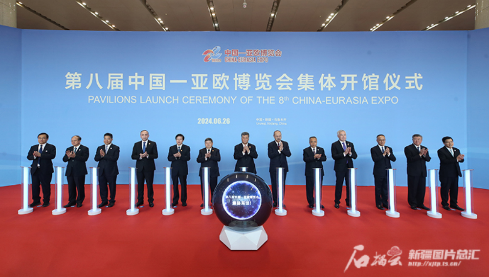 6月26日,第八屆中國—亞歐博覽會集體開館儀式在新疆國際會展中心舉行。石榴云/新疆日報記者 謝龍攝