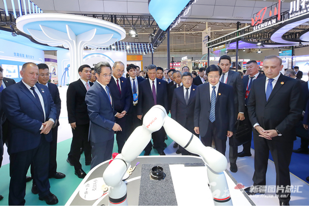 博覽會舉行了開館儀式,馬興瑞、高云龍、艾爾肯·吐尼亞孜同中外嘉賓共同啟動展館并開展了巡館活動。