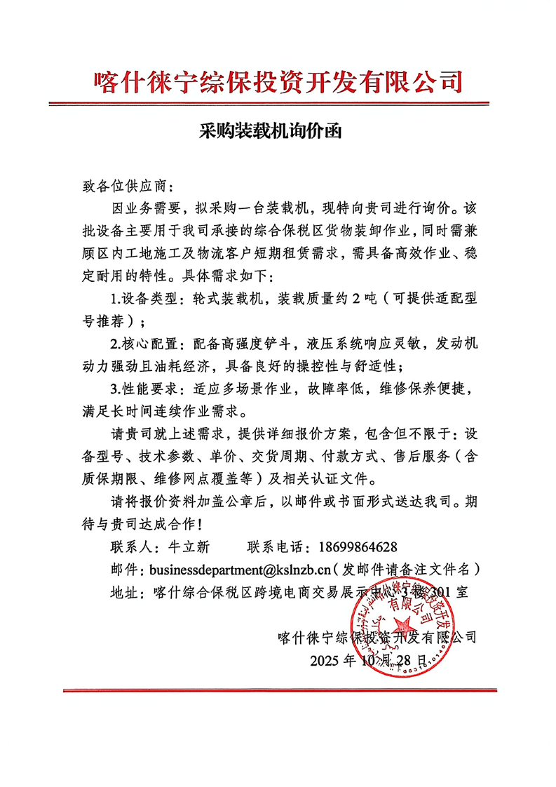 采購裝載機詢價函